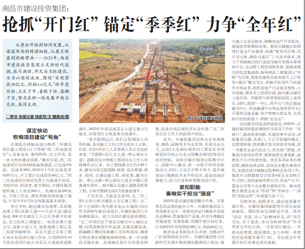 從整合升級到協(xié)同發(fā)展,從謀篇布局到精謹細致,從奠定根基到戰(zhàn)略擘畫……2023年,南昌市建設(shè)投資集團立足新時代浪潮,張弓滿弦,開足馬力抓建設(shè),全力以赴促成效,圍繞“實現(xiàn)營收38億元、利潤4.6億元”的年度目標,立足于早、著眼于快、落腳于實,努力在新一輪發(fā)展中搶占先機、贏得主動。 在南昌市繞城高速公路西二環(huán)建設(shè)項目施工現(xiàn)場(以下簡稱“西二環(huán)高速項目”),設(shè)備高聳、轟鳴陣陣,目之所及,是一派火熱的建設(shè)場景。“截至目前,西二環(huán)高速項目全線442座涵洞通道,已完成376座,完成率85%。2023年1月份完成投資9330萬元,開工累計完成投資40億元?!蔽鞫h(huán)高速項目相關(guān)負責(zé)人仇新成介紹說,為搶時間、拼進度,春節(jié)期間,市建投集團組織施工人員近500人,機械設(shè)備200余臺,不停工作業(yè),滿負荷推進現(xiàn)場施工建設(shè),計劃今年4月份全線路基基本成型。 爭分奪秒,跑出建設(shè)加速度。在洪騰高架工程(洪都大道——天祥大道)建設(shè)場地,800多名建設(shè)工人以只爭朝夕的姿態(tài),全力搶抓工期建設(shè)。一標段洪都大道立交、高新大道立交、地面道路工程以及二標段預(yù)制梁場、昌東大道立交等工程正如火如荼進行施工作業(yè),計劃2023年10月底完成項目起點至昌東大道地面道路通車,2023年年底完成昌東大道互通立交建設(shè)、實現(xiàn)項目主線高架全線通車。 “春節(jié)假期過后,我們立即增加人員和機械,各項施工工作已經(jīng)全面步入正軌,目前,共有110名工人及管理人員正在搶抓進度。”丹霞路(沿江北大道-青山湖北大道)道路及綜合管廊工程項目辦工作人員楊鋒告訴記者,該工程線路全長約1.85千米,建設(shè)內(nèi)容包括道路、橋梁、綜合管廊、排水、照明、交通設(shè)施工程、綠化等。截至目前,青山北路-青山湖北大道北半幅已具備通車條件,南半幅正在施工道路及橋梁工程,力爭丹霞路全線2月底建成通車。 干在實處,方能走在前列。北二環(huán)二期(公鐵大橋合建段立交互通工程)、北二環(huán)下莊湖橋(秀先路至金山互通段)項目作為2023年新啟動項目,市建投集團已開始精練強兵,致力為項目建設(shè)提質(zhì)增效。“北二環(huán)項目位于南昌市城市中心城區(qū)北側(cè),向西連接西外環(huán)高速,東接昌樟高速,跨越贛江橫向銜接贛江北岸和南岸,建成后將完善區(qū)域整體路網(wǎng)結(jié)構(gòu),進一步加強昌北城北部、昌南城東部片區(qū)的緊密銜接,促進沿線區(qū)域經(jīng)濟社會發(fā)展?!北倍h(huán)項目辦工作人員趙琦介紹說。 此外,市建投集團還將充分發(fā)揮規(guī)劃、測繪、園林等多專業(yè)優(yōu)勢,形成專業(yè)合力,總結(jié)《九龍湖區(qū)域豎向工程優(yōu)化專項規(guī)劃》《馬咀山生態(tài)公園概念規(guī)劃》等項目成功經(jīng)驗,加快市城市規(guī)劃總院數(shù)字中心、創(chuàng)新中心建設(shè),進一步提升科研創(chuàng)新驅(qū)動力。同時,立足引才聚才育才,提升規(guī)劃設(shè)計勘測技術(shù)水平和層次,提高咨詢決策能力,助力打造智庫型規(guī)劃設(shè)計院。 2023年是市建投集團整合升級、實現(xiàn)常態(tài)化運營的起步之年。市建投集團深入貫徹落實全市一季度經(jīng)濟運行精彩開局座談會精神,貫通集團產(chǎn)業(yè)鏈,科學(xué)合理確定發(fā)展速度、發(fā)展質(zhì)量,明確年度目標任務(wù),計劃2023年實現(xiàn)營收38億元、利潤4.6億元。 推進各業(yè)務(wù)板塊齊頭并進。為推動開門紅趨勢延續(xù)全年紅,市建投集團努力在新時代發(fā)展中做優(yōu)規(guī)劃勘測設(shè)計板塊、做大施工總承包板塊、做精房地產(chǎn)開發(fā)板塊、做強投資管理板塊等。督促市城規(guī)總院圍繞打造全產(chǎn)業(yè)鏈條,構(gòu)建“規(guī)劃為引領(lǐng)、設(shè)計為主體、測繪為基石”三大技術(shù)體系,致力于將城規(guī)總院打造成為城市發(fā)展決策智庫平臺、全過程工程咨詢服務(wù)商、基礎(chǔ)地理空間信息集成商。指導(dǎo)南昌三建集團以“申特”為引領(lǐng),聚焦房建和市政雙提升,以“投資+建設(shè)”模式為主,積極開拓省外乃至海外市場業(yè)務(wù)。搶抓房地產(chǎn)行業(yè)復(fù)蘇契機,小步穩(wěn)跑,聚焦本土優(yōu)質(zhì)區(qū)域、國內(nèi)重點城市土地市場,積極參與和獲取招拍掛土地項目。同時,圍繞“一中心,兩平臺”(供應(yīng)鏈金融為中心、資金融通平臺和業(yè)務(wù)投資平臺)開展供應(yīng)鏈金融、資產(chǎn)管理主營業(yè)務(wù),在風(fēng)險可控的前提下,積極“走出去”。 邁出新步伐促進職能優(yōu)化。2023年,市建投集團把提質(zhì)增效作為各項工作的“突破口”,推進改革創(chuàng)新,實施改革年活動,采取集團出題,各部門、子公司答題的模式,在管理體制、經(jīng)營模式等方面謀求突破,進一步激發(fā)企業(yè)內(nèi)在活力。優(yōu)化部門職能,對集團內(nèi)部崗位職責(zé)、規(guī)章制度完善更新,助推各子公司快速發(fā)展,優(yōu)化各項業(yè)務(wù)辦理流程,確保高效運轉(zhuǎn)。加快企業(yè)整合重組步伐。加速完成市城規(guī)總院事轉(zhuǎn)企各項工作,推進市公路勘察設(shè)計院等4家企業(yè)劃轉(zhuǎn)工作,同時,加快基礎(chǔ)項管公司、房