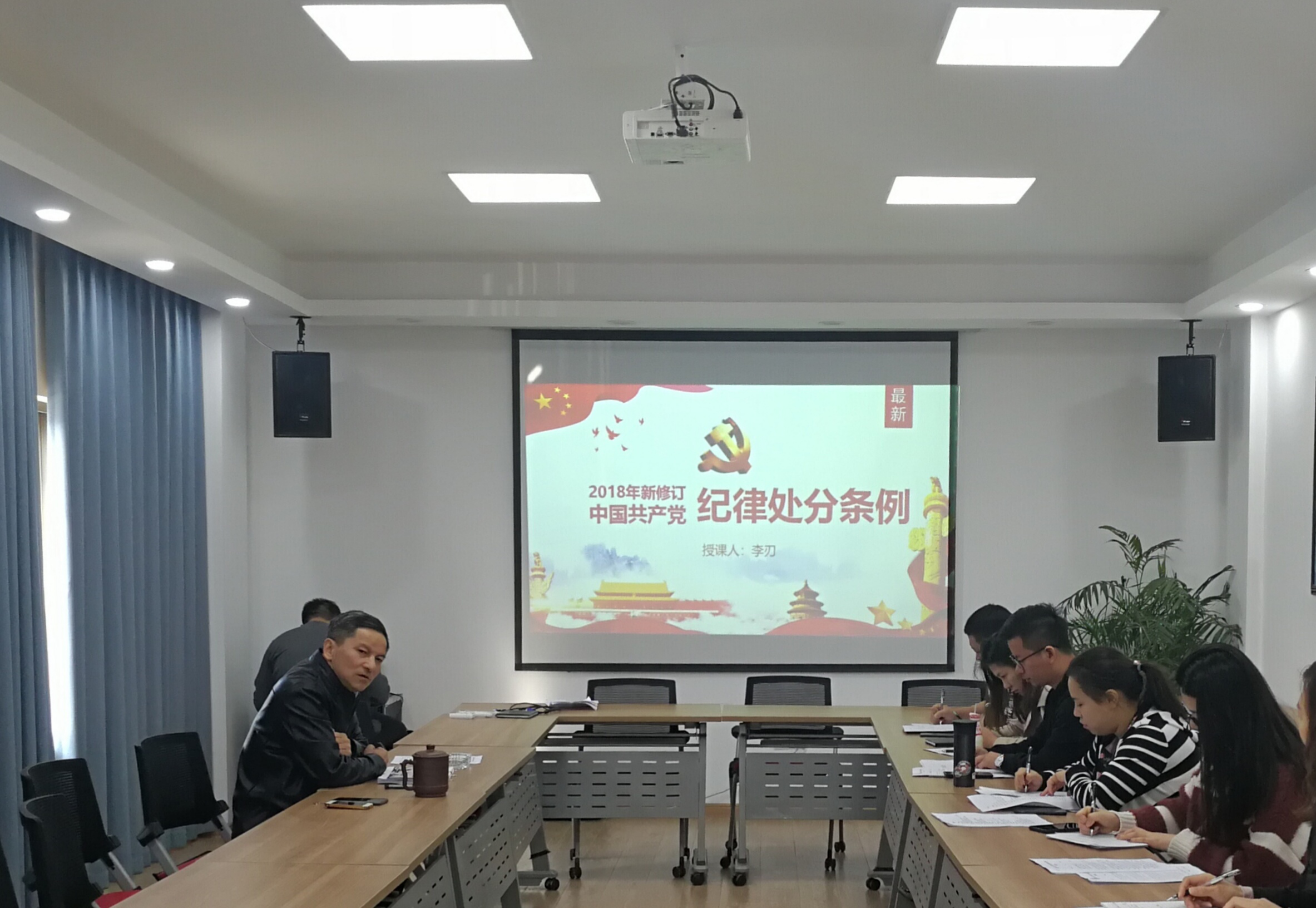 根據(jù)上級(jí)文件要求及集團(tuán)紀(jì)檢工作會(huì)議精神,南昌城投運(yùn)營(yíng)管理有限公司黨支部于11月30日下午在公司紀(jì)律講堂召開(kāi)《中國(guó)共產(chǎn)黨紀(jì)律處分條例》專題學(xué)習(xí)會(huì),公司紀(jì)檢分管領(lǐng)導(dǎo)李刃同志作為主講人,通過(guò)對(duì)紀(jì)律處分條例制定的意義及要求、條例修訂后的八大亮點(diǎn)、不忘初心牢記使命怎樣認(rèn)真遵照?qǐng)?zhí)行、紀(jì)律處分條例內(nèi)容解讀四個(gè)部分進(jìn)行講解,指導(dǎo)公司全體紀(jì)檢監(jiān)察干部、黨員及入黨積極分子認(rèn)真學(xué)習(xí)掌握《中國(guó)共產(chǎn)黨紀(jì)律處分條例》。