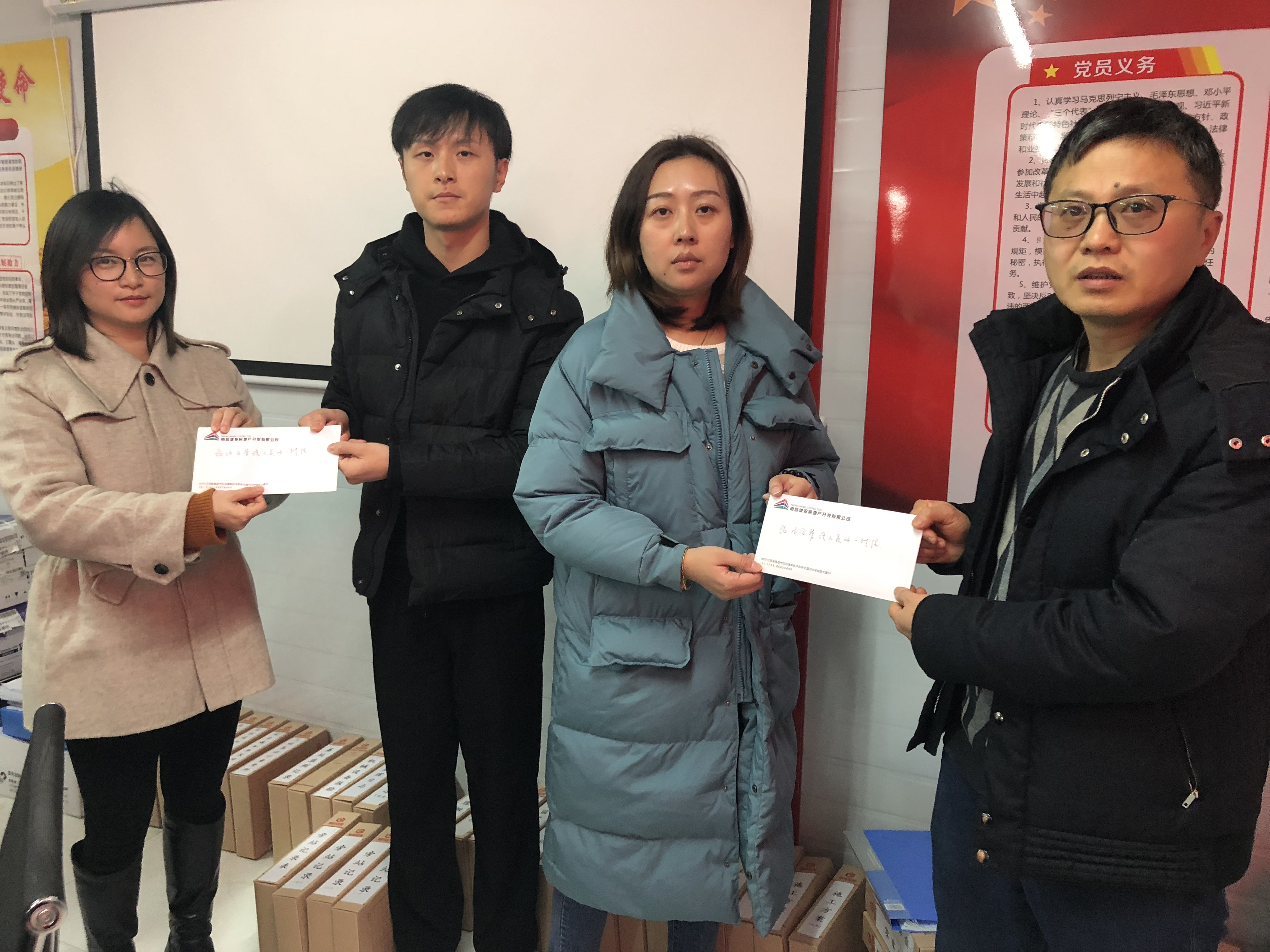 “政廉風正民心順,紀肅法明萬象新”。新春佳節(jié)到來之際,為強化南昌城投房地產(chǎn)公司廉潔文化建設,營造崇廉尚儉的節(jié)日氛圍,助力南昌市中心城區(qū)棚戶區(qū)改造項目廉潔高效的推進,城投房地產(chǎn)公司監(jiān)察室深入棚改項目一線,向全體棚改項目管理人員發(fā)放《致公司項目管理人員的一封信》,共計25份。