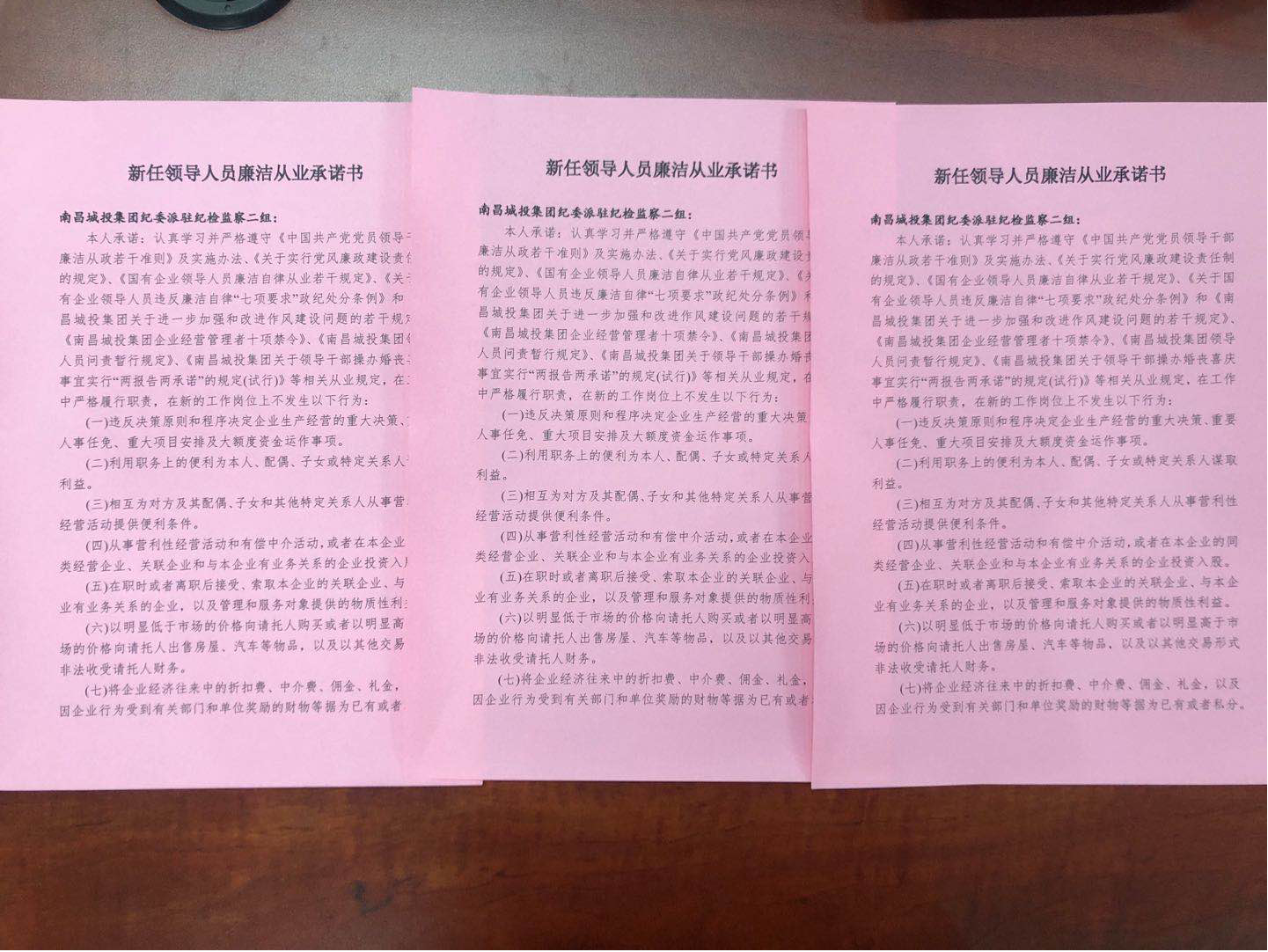 會上,集團(tuán)紀(jì)委派駐紀(jì)檢監(jiān)察二組組長鄧小娟對2020年上半年四家綜合派駐單位的三名新提拔領(lǐng)導(dǎo)人員進(jìn)行了任前廉政集體談話。她強(qiáng)調(diào),一要站穩(wěn)政治立場,加強(qiáng)政治理論學(xué)習(xí),樹立正確的世界觀、人生觀、價值觀;不忘初心,堅定正確的理想信念,在實踐中學(xué)真知,提升自身理論水平和修養(yǎng),自警自醒。二要奮發(fā)有為,腳踏實地把本職工作做好、做細(xì)、做實,奮力創(chuàng)造工作業(yè)績要敢于擔(dān)當(dāng),主動靠前、敢于負(fù)責(zé),凝聚團(tuán)隊力量。三要修身養(yǎng)性,加強(qiáng)自律,始終不渝地保持和發(fā)揚艱苦奮斗的優(yōu)良傳統(tǒng)的作風(fēng),正確使用手中的權(quán)力,做到自身正,自身凈,自身硬。按照會議安排,集團(tuán)紀(jì)委派駐紀(jì)檢監(jiān)察二組組織三名新提拔領(lǐng)導(dǎo)人員簽訂了《新任領(lǐng)導(dǎo)人員廉潔從業(yè)承諾書》,發(fā)放了《勸廉告知書》,還進(jìn)行了《南昌城投集團(tuán)新任領(lǐng)導(dǎo)人員黨紀(jì)法規(guī)知識》測試。